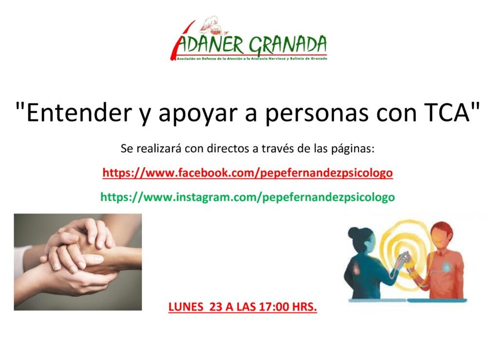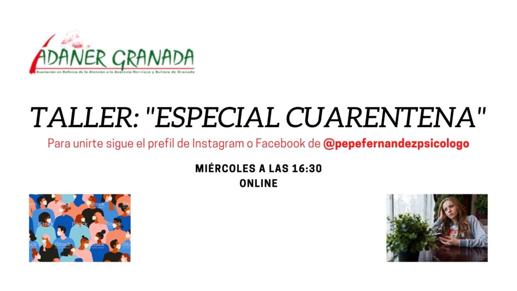 Buenas a todos. Los talleres de esta semana de ADANER Granada que impartirá Pepe a través de un directo su canal de YouTube, Pepe psicólogo y a través de su Instagram de @pepefernandezpsicologo son los siguientes: Lunes 4 de mayo, 19:30 Miércoles 6 de mayo, 16:30 Viernes 8 de mayo, 19:30 ¡¡Os esperamos!!